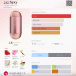 212 Sexy de Carolina Herrera es una fragancia femenina lanzada en 2004, perteneciente a la familia Oriental Floral. Creada por el perfumista Rosendo Mateu, es una esencia seductora, dulce y sofisticada que combina frescura cítrica, un corazón floral envolvente y un fondo gourmand irresistible. Su salida mezcla pimienta rosa, mandarina y bergamota, creando un inicio chispeante y sensual. En el corazón, el algodón de azúcar, la gardenia, las flores, el pelargonio y la rosa aportan un toque femenino, dulce y aterciopelado. Finalmente, la base de vainilla, almizcle, sándalo, caramelo, violeta y pachulí deja una estela cálida, adictiva y magnética.