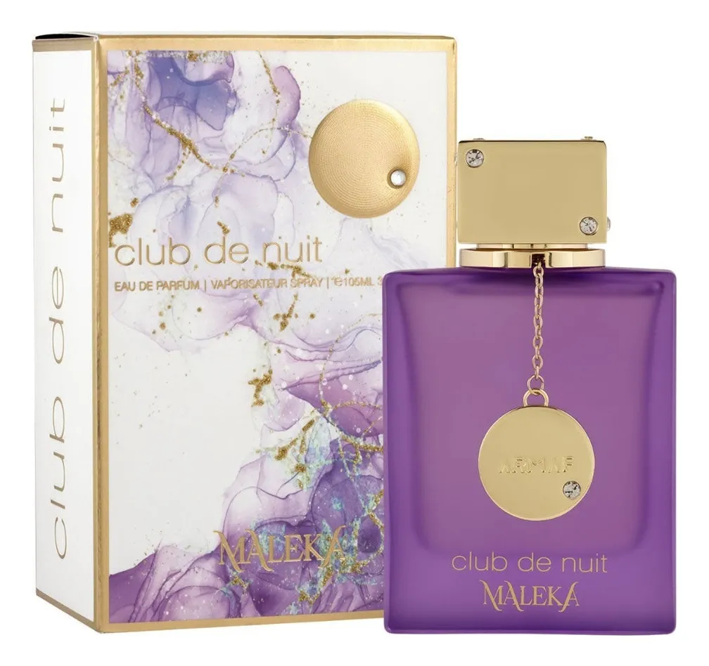 Club De Nuit Maleka de Armaf es una fragancia femenina lanzada en 2025, perteneciente a la familia Floral Frutal. Aunque no es un dupe oficial, se considera una alternativa a Good Girl de Carolina Herrera, gracias a su perfil dulce, floral y con un fondo cálido y envolvente que recuerda al estilo característico del icónico perfume. 377Su apertura chispeante de lychee, bergamota y pimienta rosa aporta frescura frutal y un toque especiado. El corazón, protagonizado por la raíz de lirio, suma un aire elegante, polvoso y sofisticado. Finalmente, el fondo gourmand de praliné, sándalo y ambroxan otorga cremosidad, dulzura y sensualidad duradera.