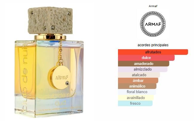 Notas de fondo: almizcle, oud camboyano, vainilla, ámbar cristalino
