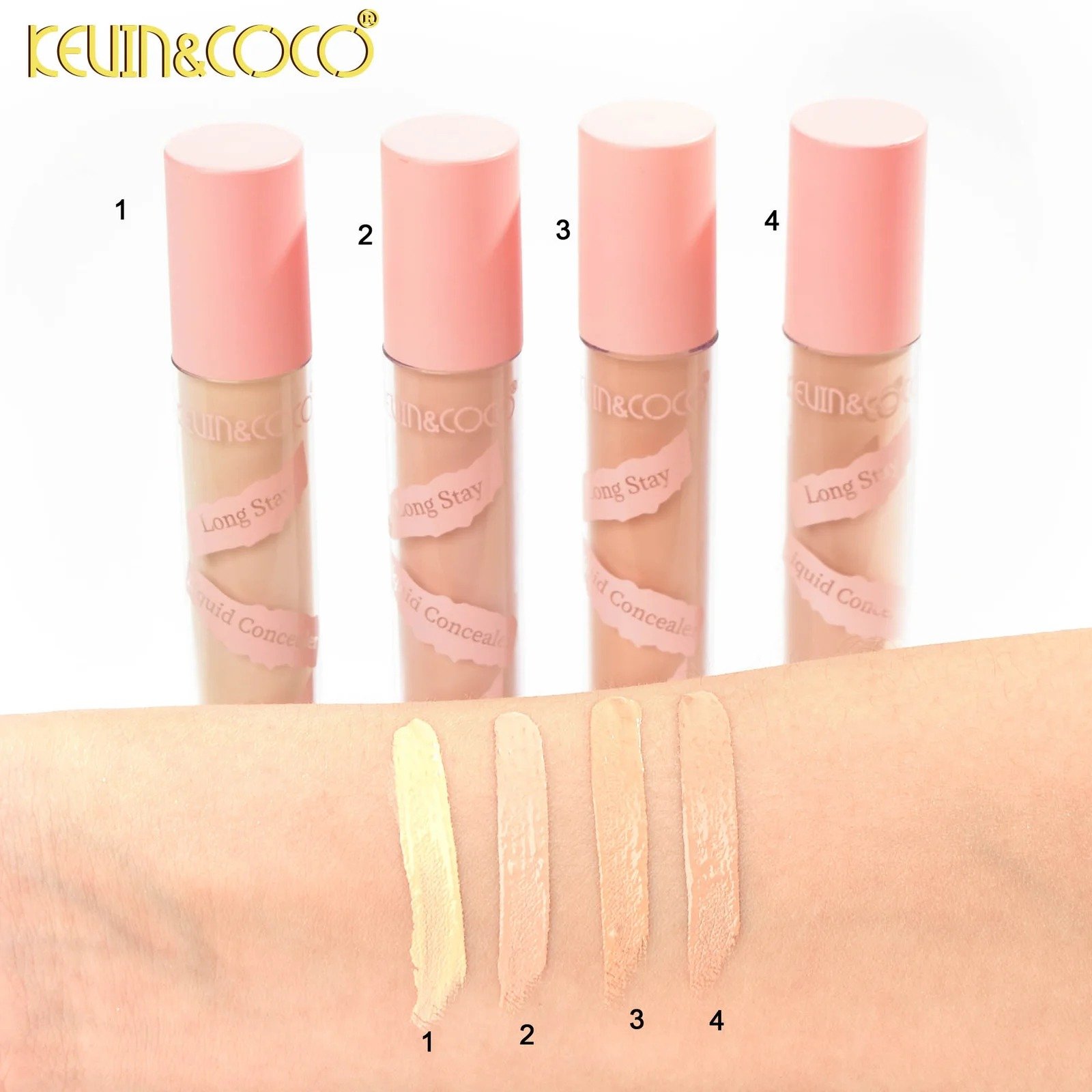 Corrector líquido de larga duración y alta cobertura.