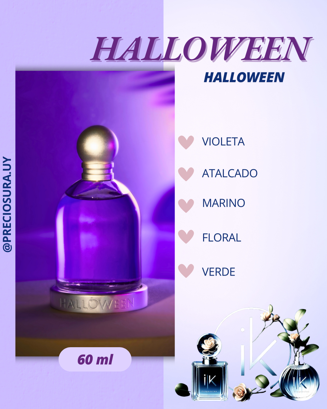 Halloween de Jesús del Pozo es una fragancia femenina lanzada en 1997, perteneciente a la familia Oriental Floral. Creada por el perfumista Max Gavarry, destaca por su carácter misterioso y seductor, combinando frescura, notas florales y un fondo cálido y especiado. Su apertura vibrante con violetas, notas marinas y petit grain da paso a un corazón floral intenso y especiado, mientras que la base de incienso, sándalo, vainilla y mirra aporta sensualidad y misterio. Es un perfume único, envolvente y duradero, perfecto para mujeres que buscan dejar huella.