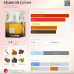 Khamrah Qahwa de Lattafa Perfumes es una fragancia unisex lanzada en 2023, ideal para quienes aman los aromas cálidos, dulces y con un toque intenso de café. Su salida especiada abre con canela, cardamomo y jengibre, dando paso a un corazón gourmand cremoso y floral. En el fondo, la vainilla y el café se fusionan con la haba tonka y el benjuí para crear una estela profunda, envolvente y extremadamente adictiva. Perfecta para noches frías y ocasiones especiales donde querés destacar.