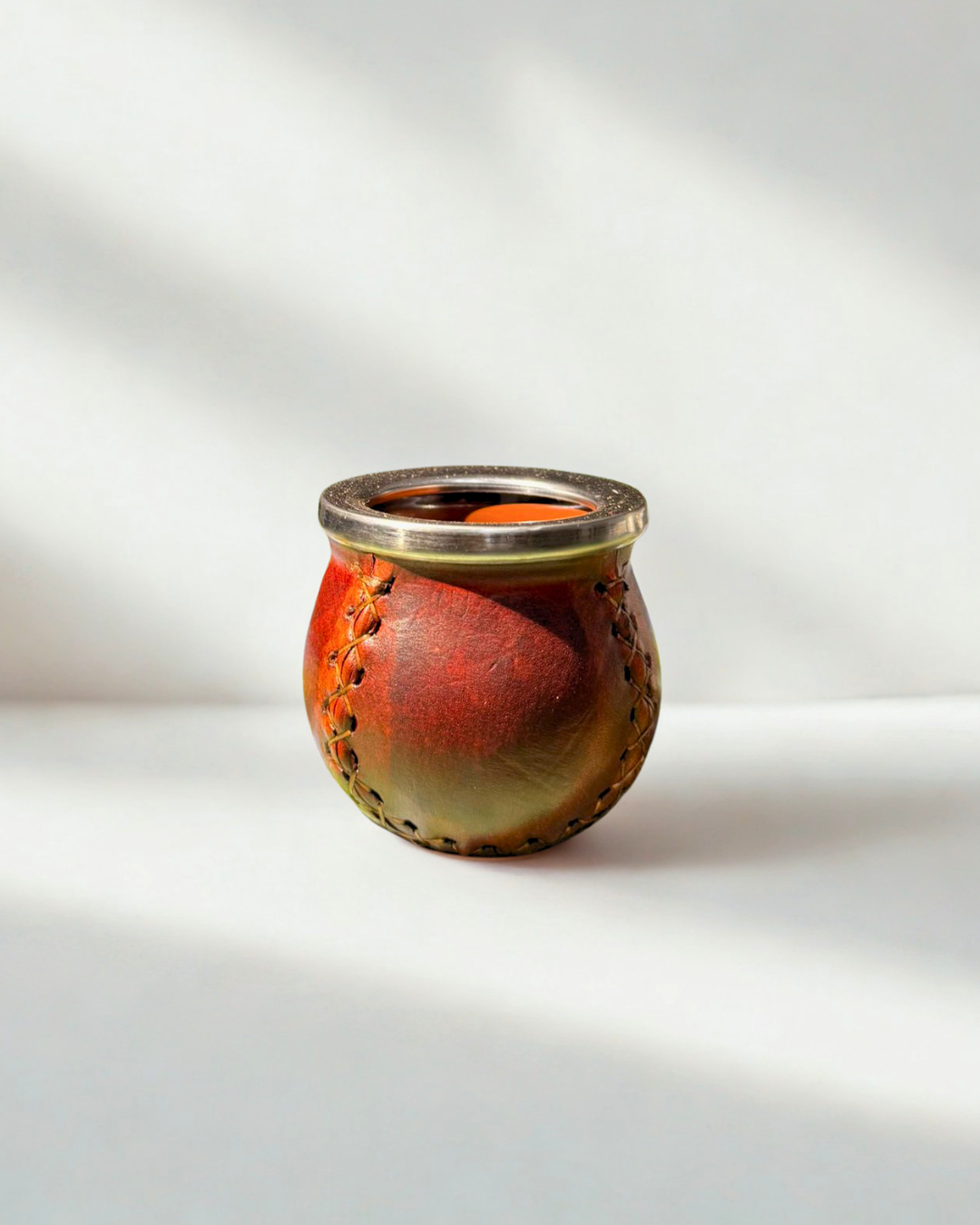 Mate de cerámica compacto, ideal para quienes buscan una opción práctica y cómoda para el día a día. Su diseño clásico, forrado en cuero, le da un estilo tradicional con un toque moderno.