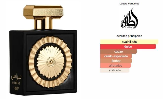 Nebras de Lattafa Perfumes es una fragancia unisex reconocida como un dupe del perfume Eilish de Billie Eilish. Su carácter es intensamente dulce y sensual, con un toque aromático que le da personalidad y sofisticación. Es un aroma envolvente, adictivo y elegante, pensado para quienes buscan destacar con un perfil goloso, moderno y cautivador. Su estela atrae miradas y deja huella, convirtiéndolo en una opción perfecta para ocasiones especiales.