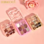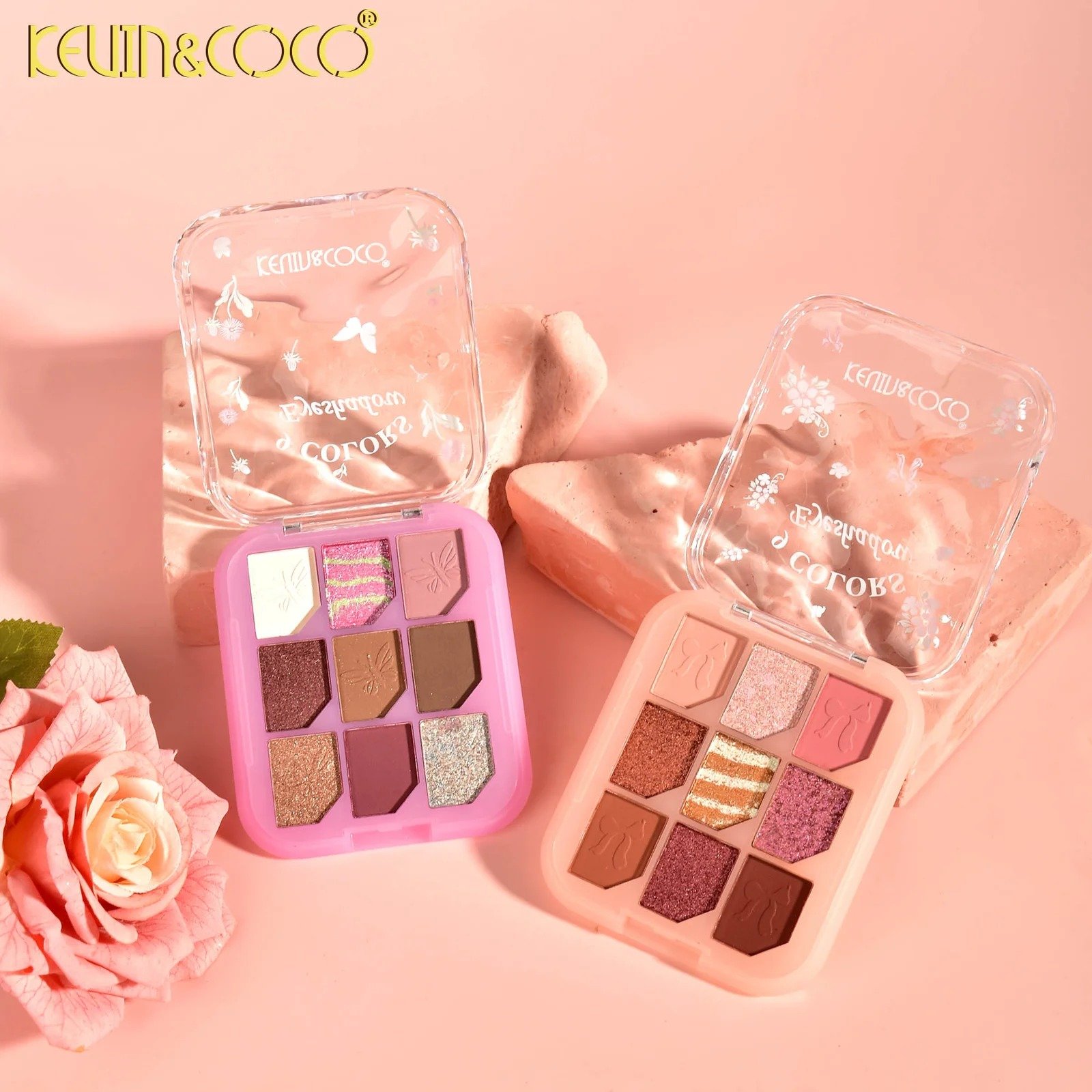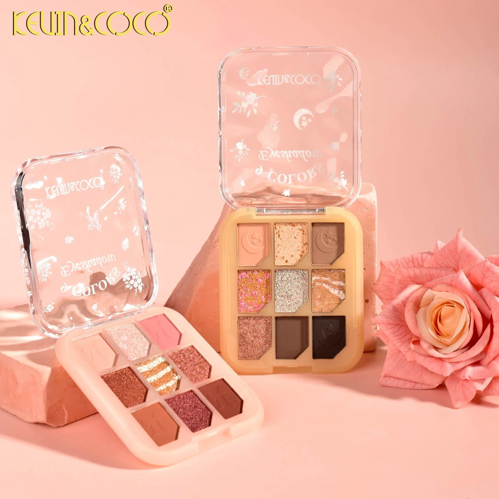 Paleta de maquillaje con 9 sombras distribuidas en mate y satinadas.