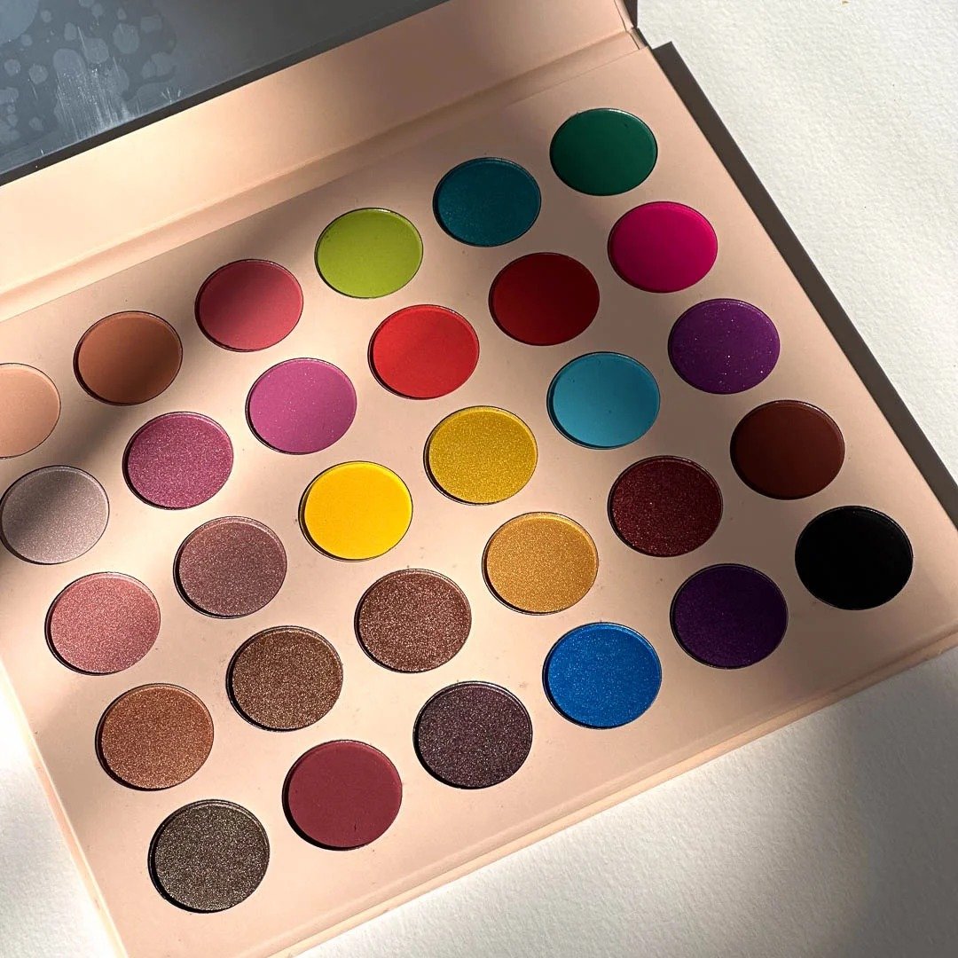 Tiene 30 sombras de excelente pigmentación y fácil difuminado, distribuidas en mates y satinadas en tonos neutros, fríos y cálidos.