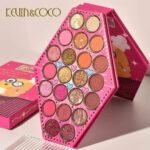 Contiene 23 sombras distribuidas en mate, satinadas y glitter prensado de alta pigmentación y fácil difuminado, 3 rubores y 2 iluminadores en polvo.