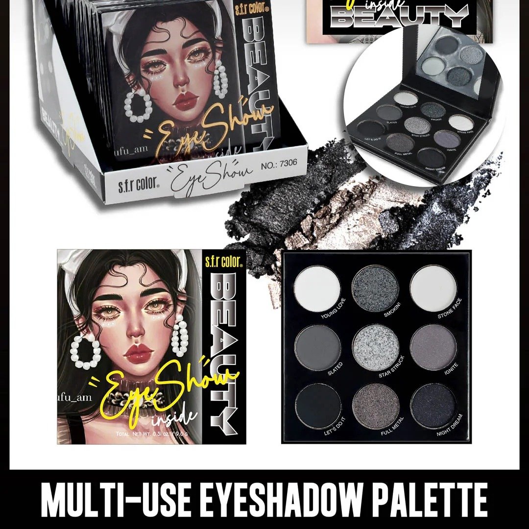 Paleta de sombras con 9 sombras distribuidas en mate y satinadas.