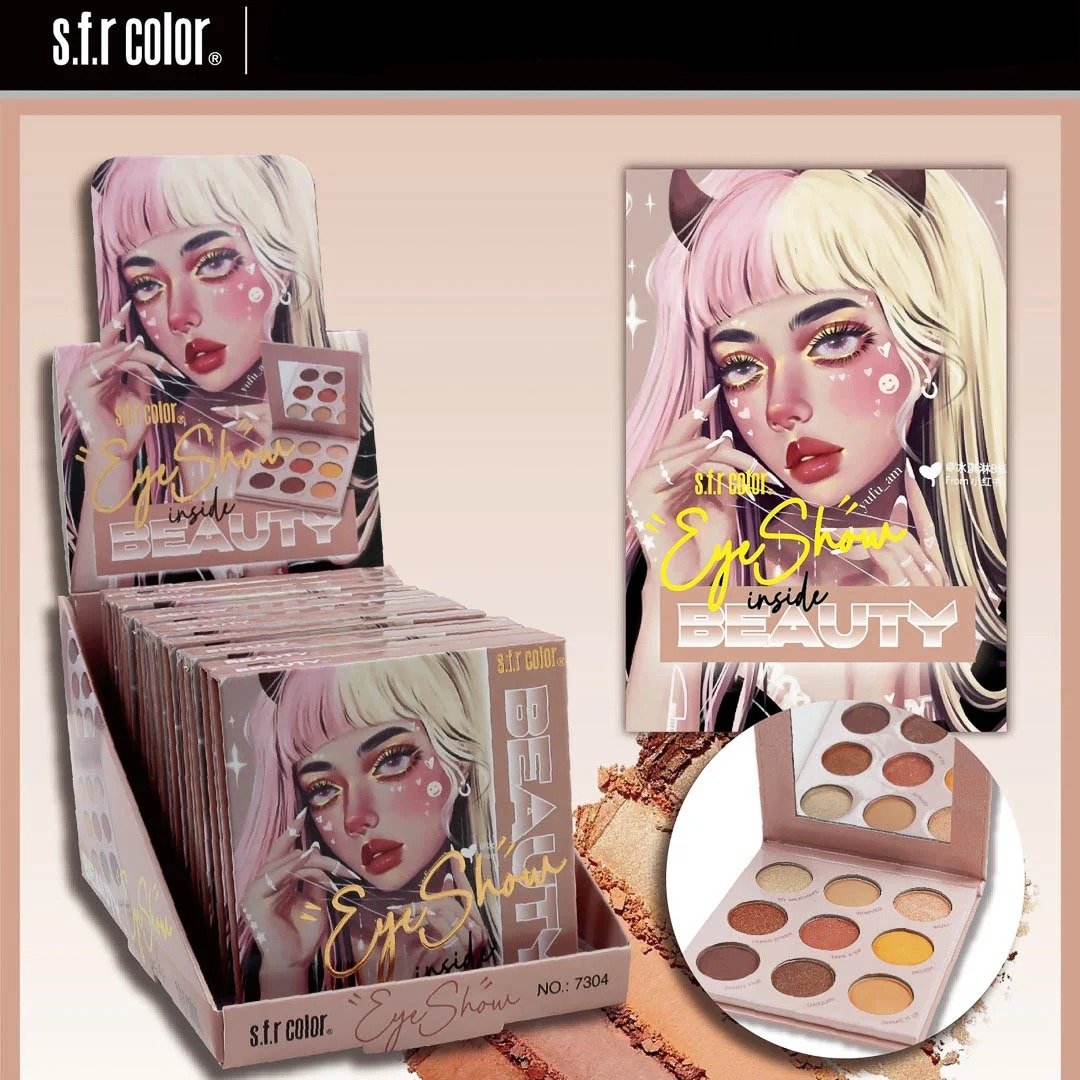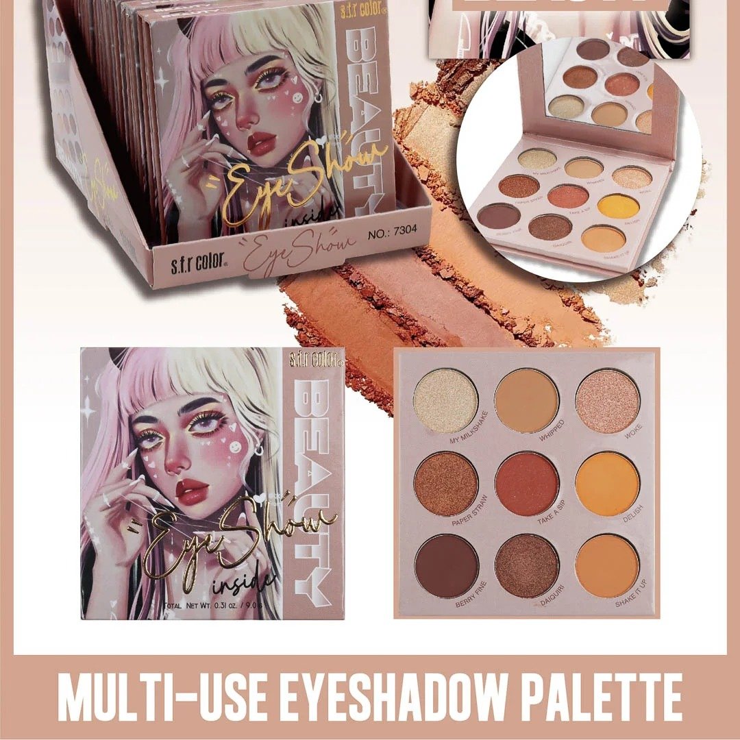 Paleta de sombras con 9 sombras distribuidas en mate y satinadas.