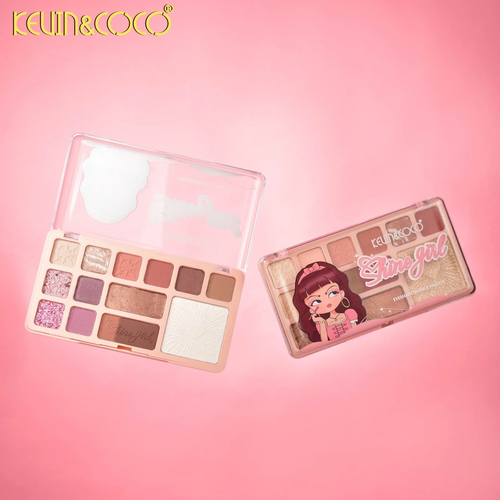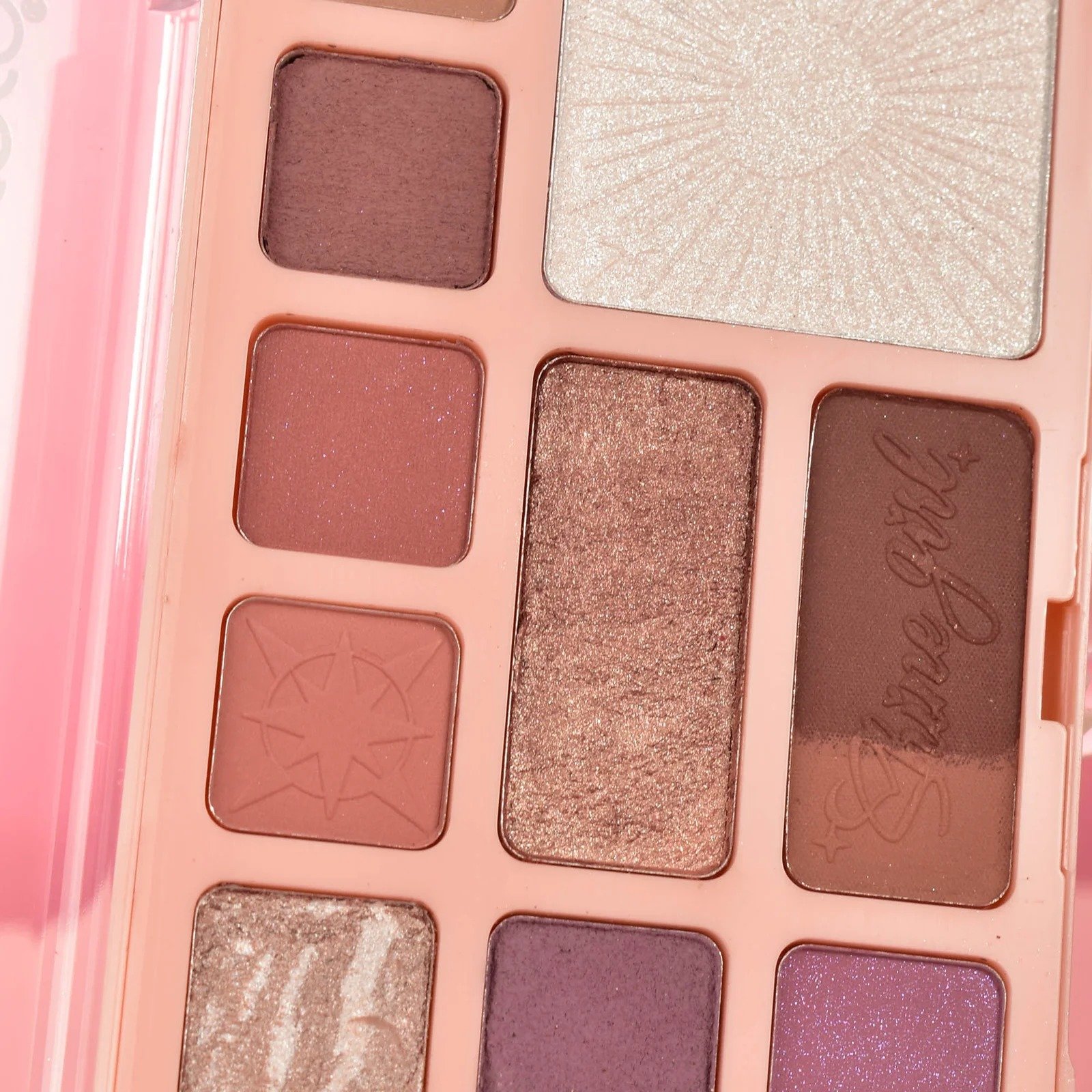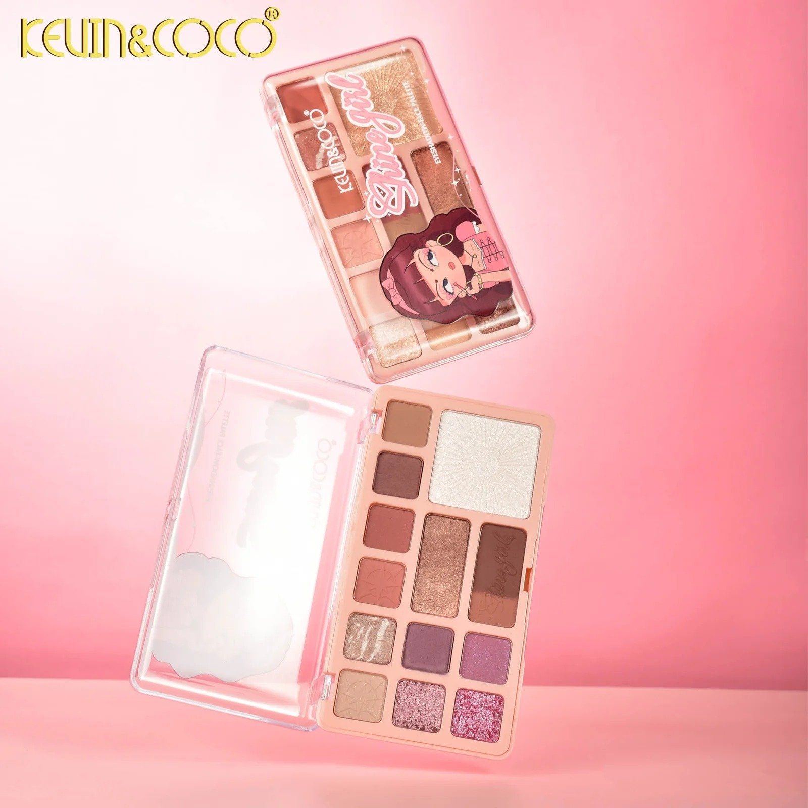 Paleta de maquillaje con 13 sombras distribuidas en mate y satinadas.