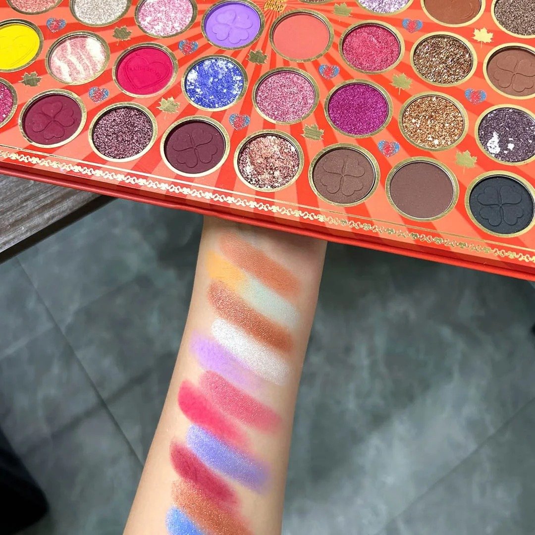Contiene 48 sombras distribuidas en mates, satinadas y glitters prensados de alta pigmentación y fácil difuminado.