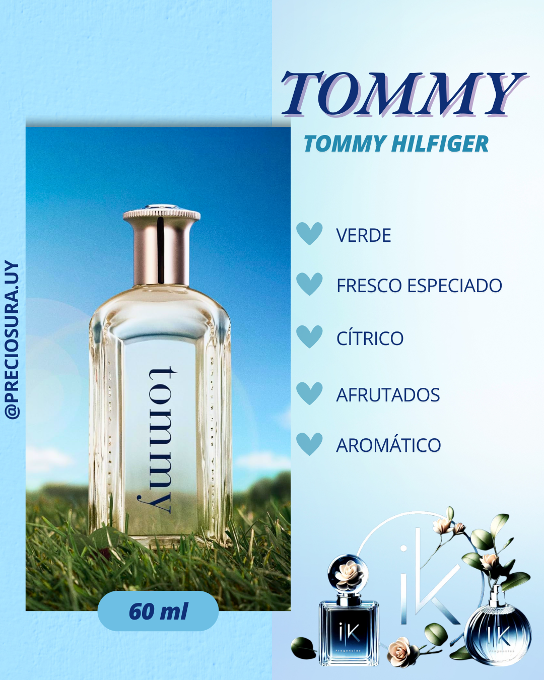Tommy de Tommy Hilfiger es una fragancia de la familia olfativa Cítrica Aromática para Hombres. Tommy se lanzó en 1995. Tommy fue creada por Annie Buzantian y Alberto Morillas. Las Notas de Salida son menta, bergamota, toronja (pomelo) y lavanda; las Notas de Corazón son manzana Granny Smith, arándano y rosa; las Notas de Fondo son flor del algodonero, cactus y ámbar.